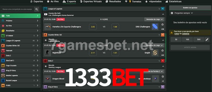 O 1333bet oferece uma grande seleção de opções de apostas em e-sports com probabilidades competitivas
